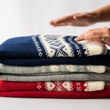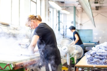 Mens vi strikker plaggene våre i Norge, sømmes de fleste sammen på vår fabrikk i Polen. Denne fabrikken er heleid av oss.