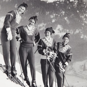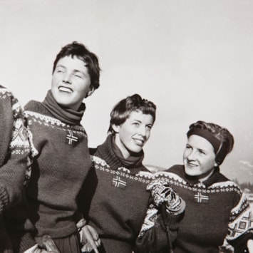 På bildet, fra venstre: Astrid Sandvik, Berit Stuve Nesje, Marit Haraldsen Foss og Inger Bjørnbakken. Genseren ble brukt som konkurranseantrekk av utøverne!