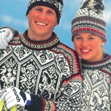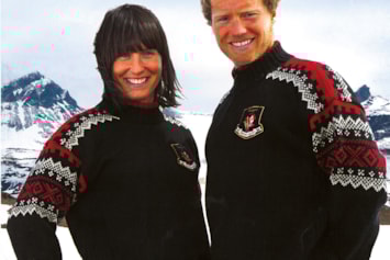 På bildet: alpinistene Jan Einar Thorsen og Astrid Lødemel i OL-genseren.