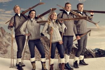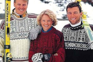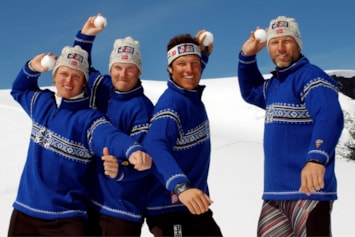 Genseren ble også brukt av norske utøvere i alpin-VM i Bormio, Italia, samme år. På bildet ser vi alpinistene Bjarne Solbakken og Aksel Lund Svindal (bak), og Truls Ove Karlsen og Lasse Kjus (foran).