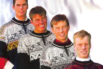 På bildet, fra venstre: langrennsløperne Thomas Alsgaard, Erling Jevne, Sture Sivertsen og Bjørn Dæhlie i OL-genseren.