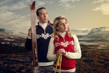 På bildet ser vi alpinistene Kjetil André Aamodt og Line Viken.