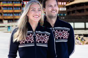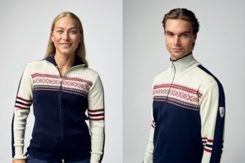 Bildet viser Kjetil Jansrud og Nina Haver-Løseth i den offisielle VM-jakken.